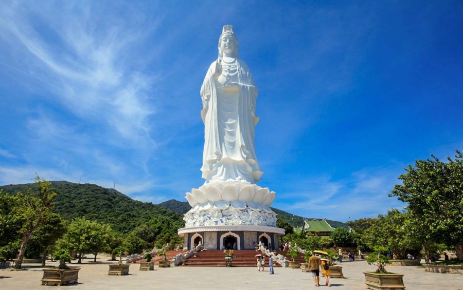 09h00 Quý khách tiếp tục ghé thăm Quán Âm Phật Đài (Mẹ Nam Hải) – thuộc hệ phái Phật giáo Bắc tông; nằm trong khu vực phường Nhà Mát của thành phố Bạc Liêu. Với tượng Quan Thế Âm Bồ Tát cao 11mét, uy nghi hướng nhìn ra biển Đông (Nam Hải).